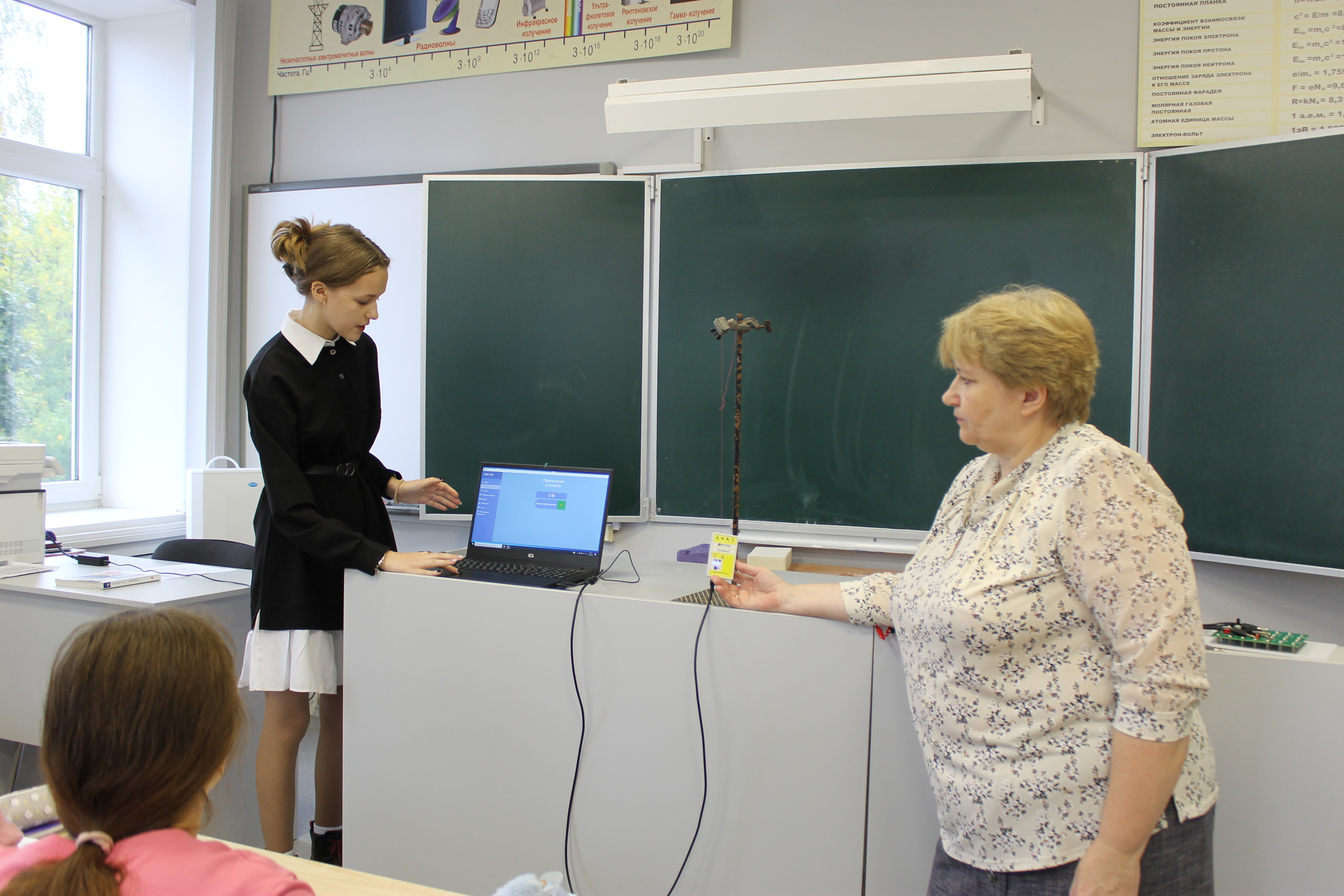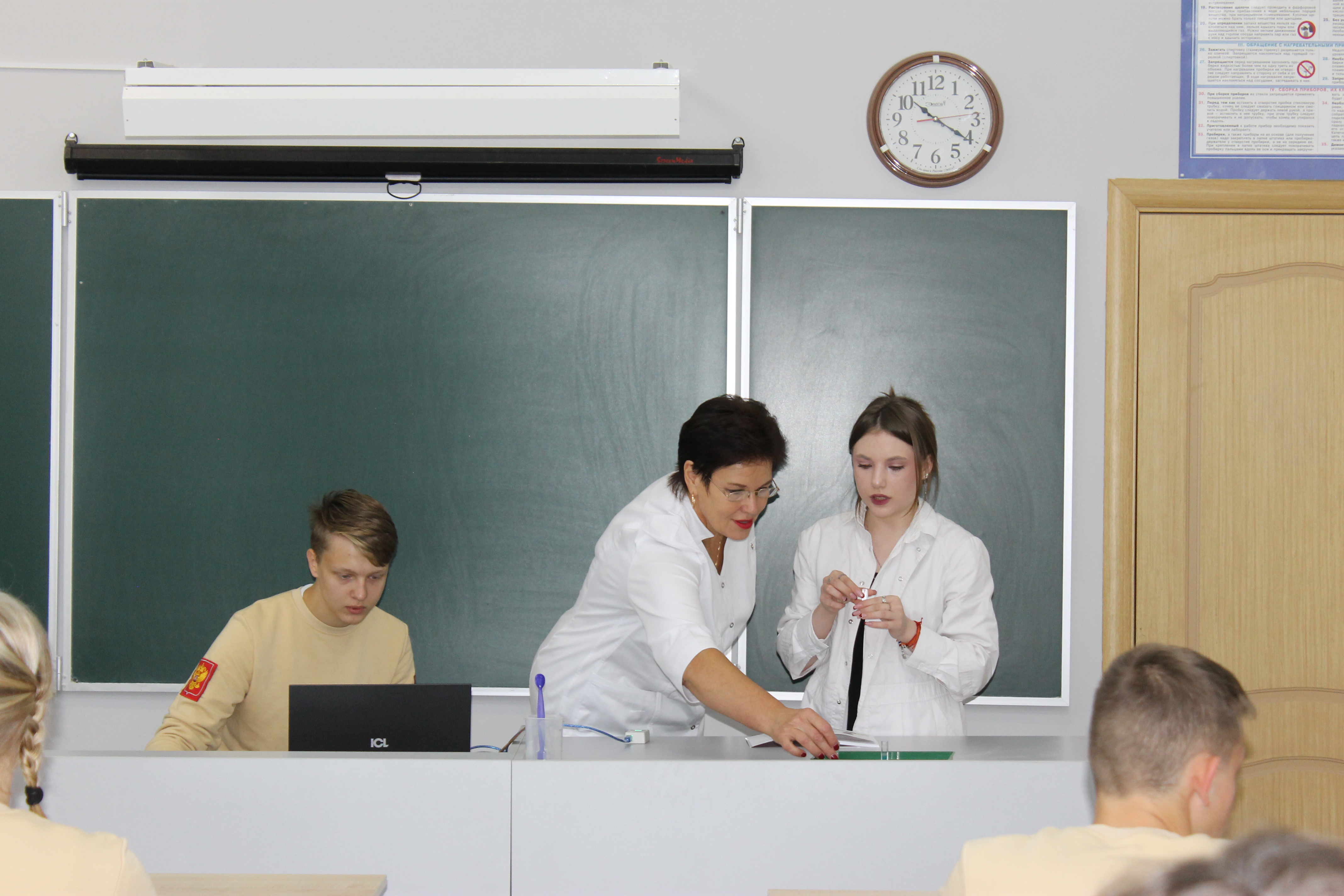 Гости прошлись по новым кабинетам. Педагоги и учащиеся познакомили их с новым оборудованием, а также продемонстрировали ряд опытов.